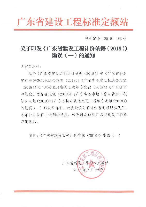 附件:關于印發(fā)《廣東省建設工程計價依據(2018)》勘誤(一)的通知