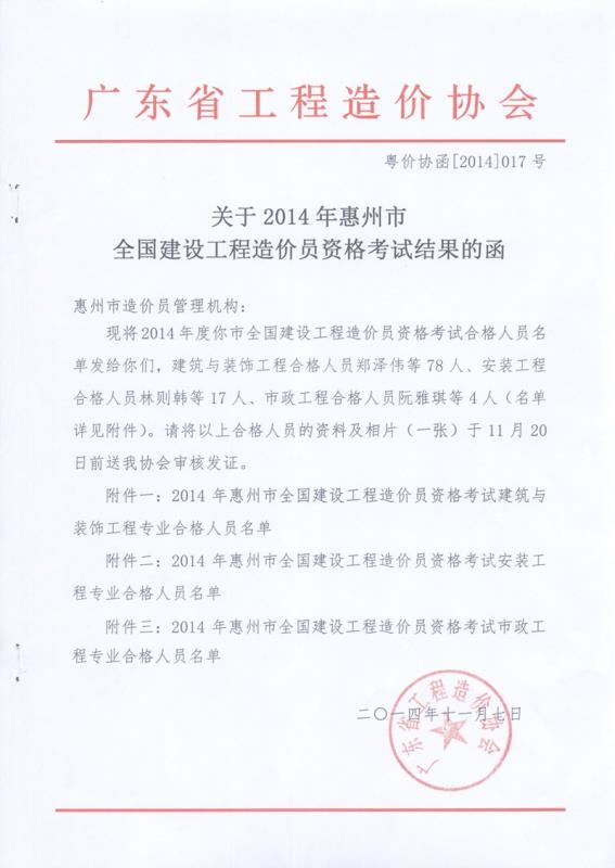 惠州市建設工程造價協(xié)會(簡介) 聯(lián)系電話:0752-2101515,2101357 地址:惠州市江北21號小區(qū)三新北路58號四樓